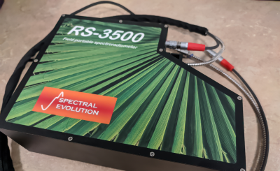 of IACM owns a Field Portable Spectroradiometer (RS-3500) covers the full-spectrum of ultraviolet/visible/near infrared measurements (350-2500 nm) with just one scan. It can be operated by one person and is accompanied with a handheld Computer. For more information see here.